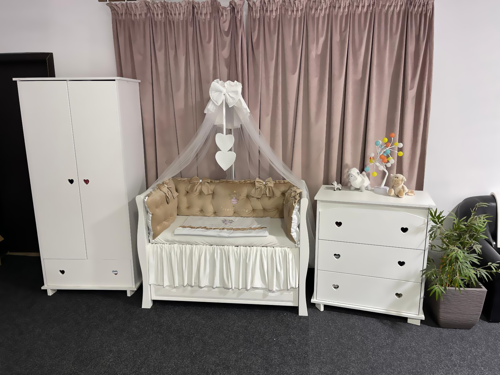 Creează un pătuț elegant, sigur și complet echipat pentru bebelușul tău cu setul Regal Beige PeppiBambini, format din 11 piese confecționate din catifea moale în nuanță bej și bumbac natural premium. Acest set este conceput pentru a proteja pielea sensibilă a nou-născuților și pentru a oferi confort maxim în primele luni de viață.