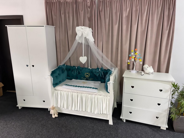 Completează pătuțul bebelușului cu un set luxos, sigur și confortabil: setul Royal de 11 piese PeppiBambini, realizat din catifea moale verde smarald și bumbac natural de înaltă calitate. Designul elegant, materialele premium și posibilitatea de personalizare îl transformă într-o alegere ideală pentru părinții care pun accent pe calitate și estetică.